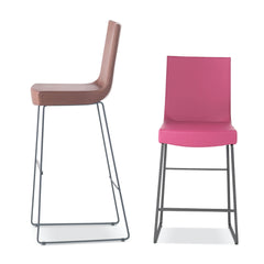 The Jim barstool gracefuly combines comfort and simplicity. A one-piece seat curves from a scooped base up to a high straight back. The volume increases in the seat. This ergonomic form guarantees a good support. Available in counter height or bar height.