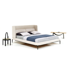 The daybed can also be used at home as a guest bed, thanks to a special linen-upholstered, softly padded mattress that, when placed on the bolster pillows, transforms the seat into a real sleep oasis. By applying the Japanese lifestyle philosophy to the new needs of the contemporary home, the mattress is a removable accessory that allows an increasingly versatile use of home furnishings.