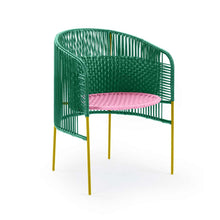 The Caribe Chic Dining Chair is an elegant design by Sebastian Herkner and can be used inside and outdoors. It’s part of our Caribe Chic collection, featuring an intricate hand-woven webbing in contrasting earthy, muted shades. The pieces and colours are inspired by the incredible nature of the Colombian Huila region where the serene Tatacoa desert meets the powerful Rio Magdalena.