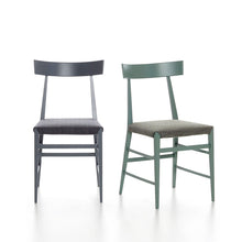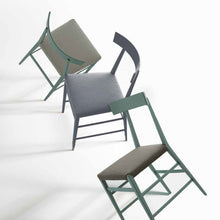 Chair with frame in solid beech wood. The legs with a minimal cross section lend the item lightness and elegance and ensure that the structure is stable and robust. The design of the backrest and seat favor personal comfort and support for posture through enveloping form and light seat padding.